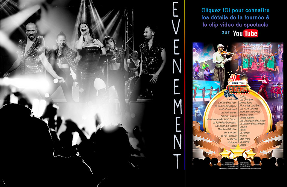 Fiesta Croisière Tournée Mars Avril Mai 2025 De Paris à Vegas Novembre Decembre 2024 Le Meilleur des Comédies Musicales 2024 2025 La France En Chanté 2024 Toujours un Tube 2024 Fantasia Latina Show Mars 2024 Pliaska Mars Avril 2024 Disco Fever Tournée 2024 Sheila Tournée 2024 Frank Michael Samedi 2024 Michele Torr 2024 d'Amsterdam à Vesoul 2024 De Paris à Broadway 2024 Tubes d'un Jour Tubes toujours 2024 Les Stentors Novembre 20224 Tiki Village Théâtre de Moorea Contact |